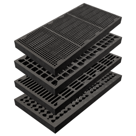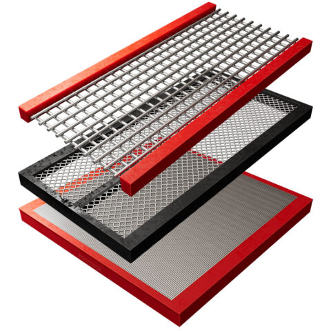 Modular 1’ X 2’ rubber screen media that is available in various compounds for flexibility or stiffness or microbial resistance or high temperature applications. Their softer “Flexi” rubber design option has proven to be extremely effective in eliminating blinding. Their standard rubber compounds resist abrasion so you can get longer wear life than competitive screen media options currently on the market.